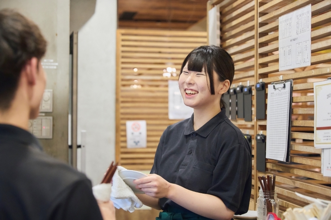 忙しいお店なので、ホールとキッチンが連携して仕事を進めるチームワークがとても大切です。店長や先輩社員、パートナーリーダーが出す指示が的確なので、私もそうした指示を出して運営できるようになりたいです。お店のミーティングでは、お客さまが笑顔になり「また来たい」と思ってもらうために、みんなが考え意見を出して行動するようにしています。こうした経験を重ねてチームワークの大切さを学び、どんな仕事をする上でも、周囲の人と協力することが重要だと実感しました。